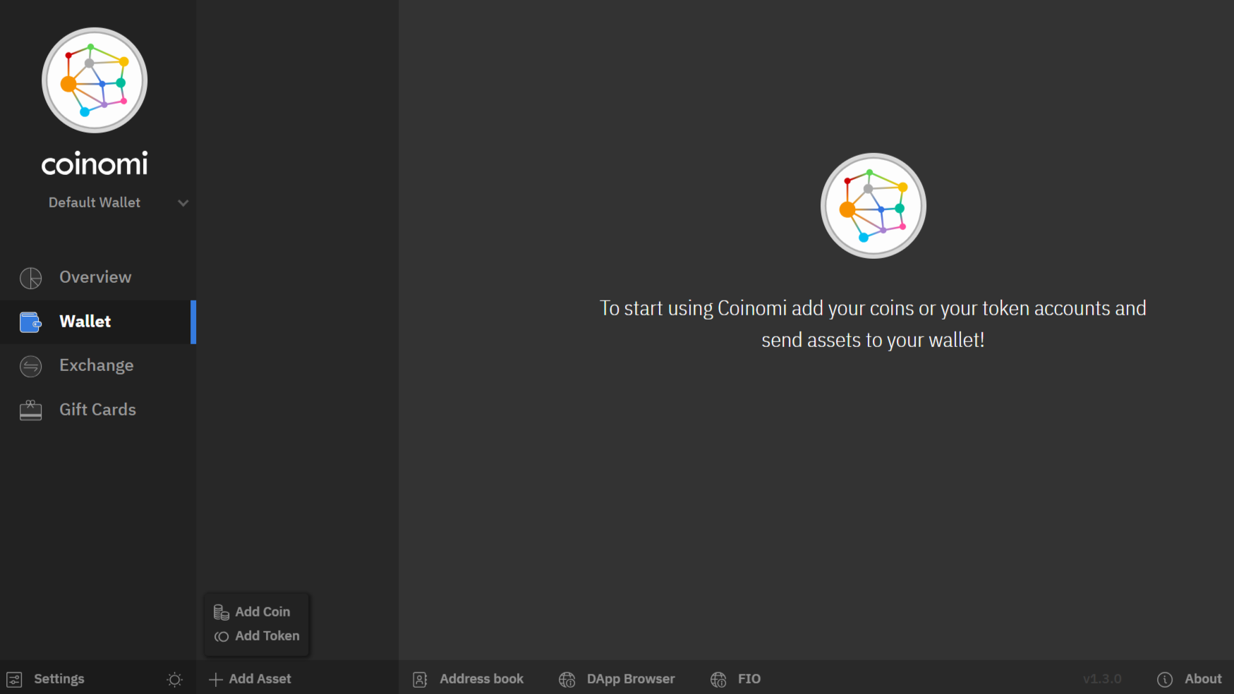 Add Coin: برای اضافهکردن کوینهای جدید به ولت.