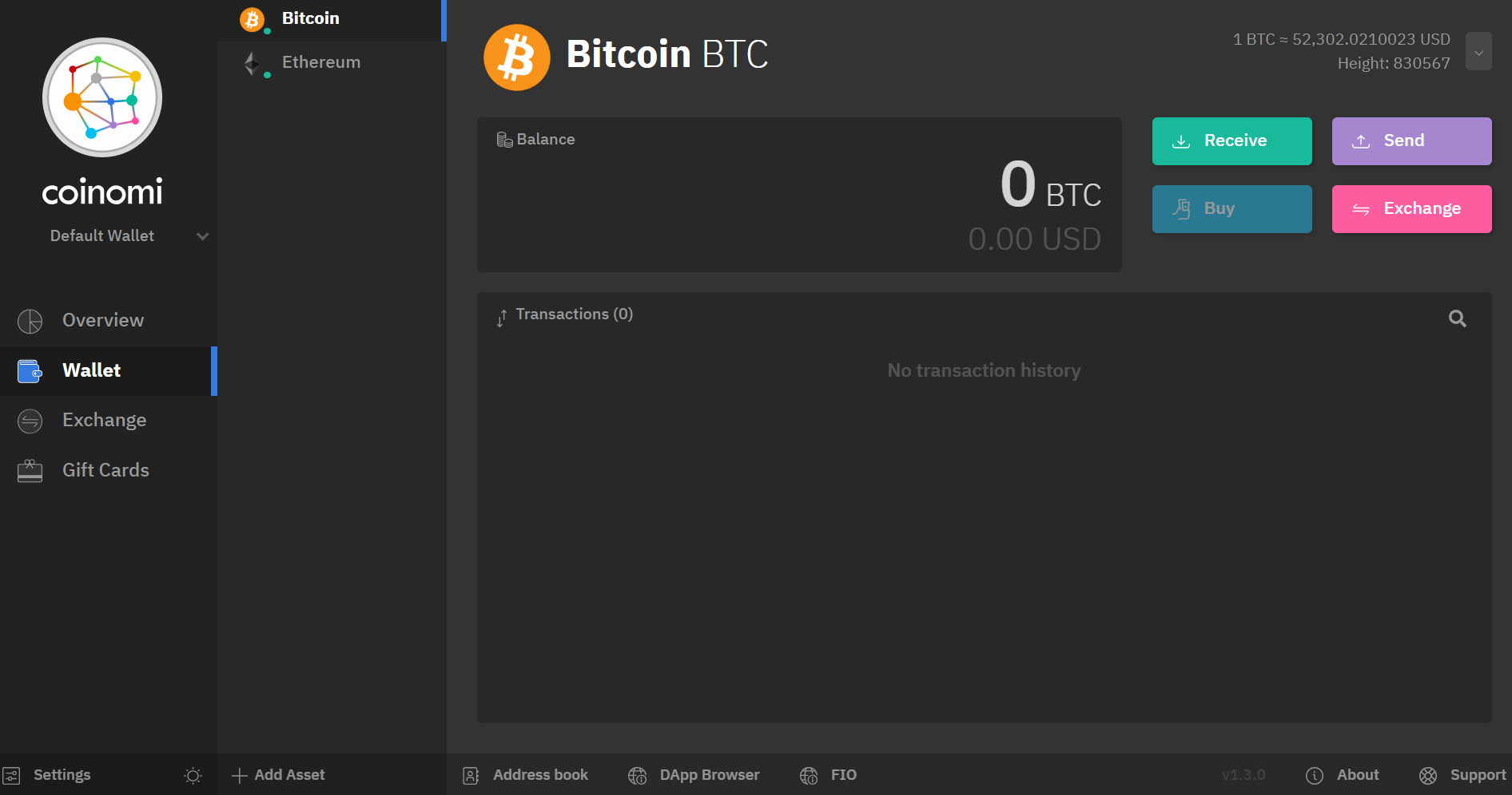 هر کوین انتخاب شده، ولت مخصوص به خودش را در پنل شما خواهد داشت که موجودی و گزینههای «Send» و «Receive» برای ارسال و دریافت در دسترس خواهد بود.