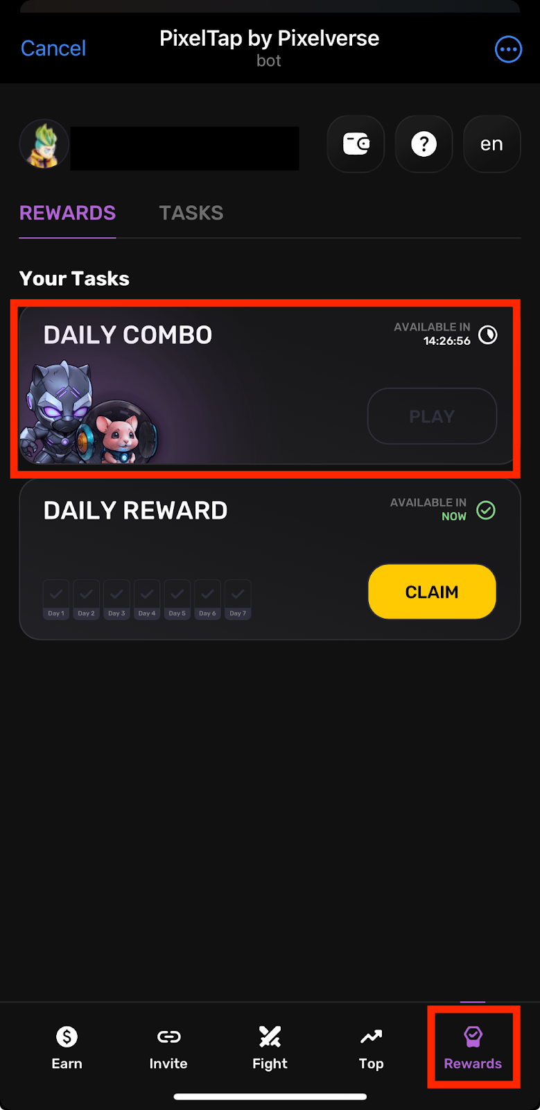 به بخش “Rewards” در برنامه بروید و در قسمت پایین سمت راست، Daily Combo را پیدا کنید.