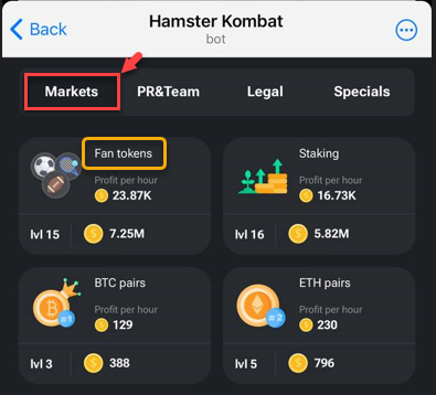کارتهای همستر کمبت را میتوانید در تب Mine در پایین صفحه مشاهده کنید. هر روز سه کارت مشخص میشوند که با پیدا کردن و ارتقاء آنها به سطح بعدی، جایزه میگیرید. این سه کارت با نام دیلی کمبو (Daily Combo) یا کمبوی روزانه هم شناخته میشوند و ممکن است در یکی از این چهار بخش قرار داشته باشند: